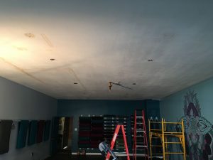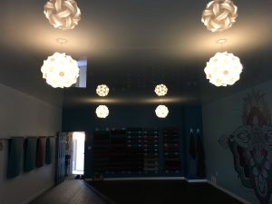 Below some pictures of a stunning ceiling transformation at a YOGA studio in Vernon (www.lotusandlettuce.com) from an old stippled ceiling with repair sections to a glossy white Stretch Ceiling!